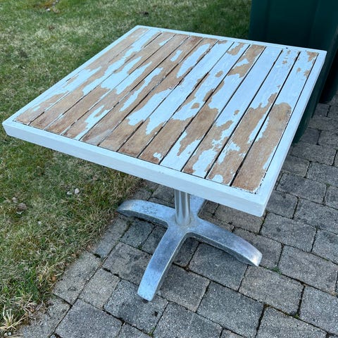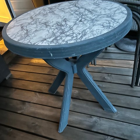 Overflaten har synlig slitasje i malingen, og treverket bør vaskes og males på nytt etter behov☀️