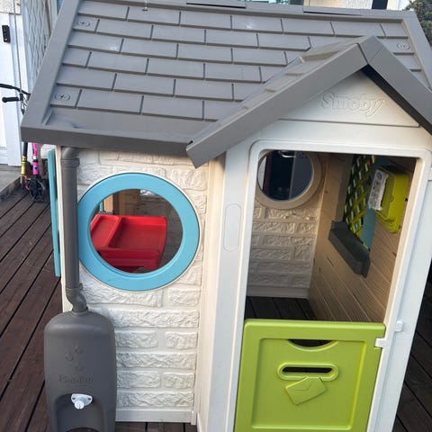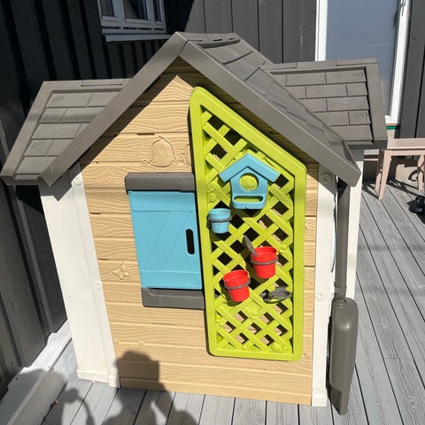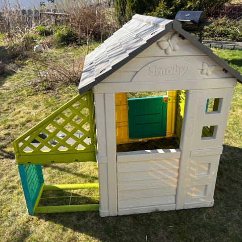 Smoby lekehus selges. Noen bruksmerker og litt knekt i ene takrennen.