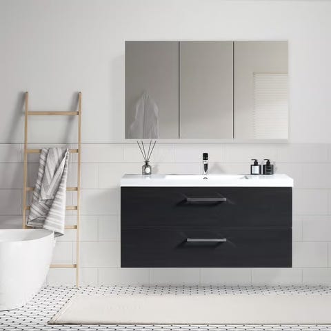 Selger et elegant og plassbesparende speilskap i skandinavisk stil. Perfekt for gang, soverom eller bad. Skapet har speilfront og åpne hyller på ene siden – ideelt til småoppbevaring