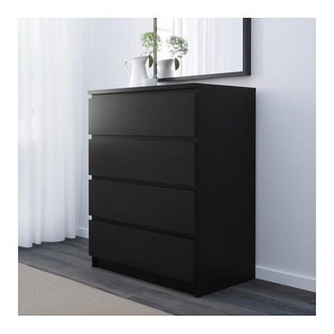 Kommode med 4 skuffer selges. Tror det er ikea malm. Litt fuktig på bildet etter jeg tørket støv like i forkant.. ;-)