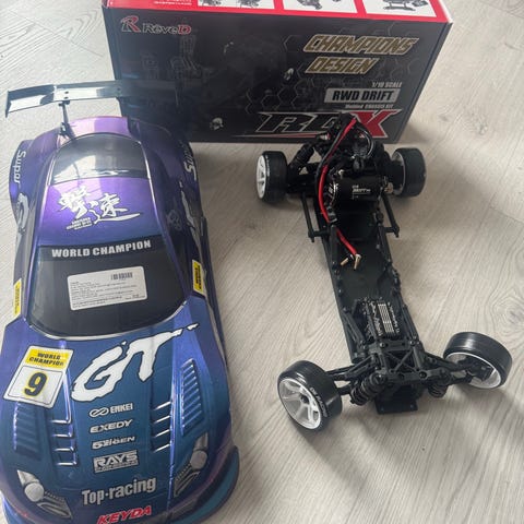 følger med det som er vist på bildene litt små deler og helt ny Silvia body med lys foran og bak som kan blitse, se bilder for og få informasjon om specs på bil. selges for 10000kr med yokomo V4 gyro