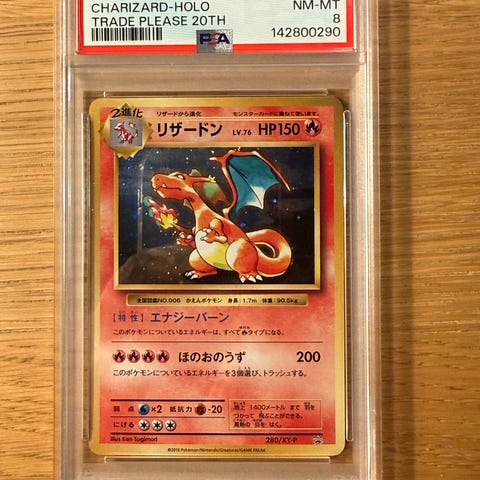 Pokémon 2023 Charizard samlekort. Kortet er innkapslet og gradert av PSA med PSA/DNA-sertifisering.