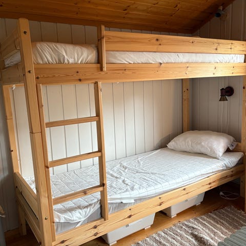 Pent brukt familiekøye i furu med madrasser