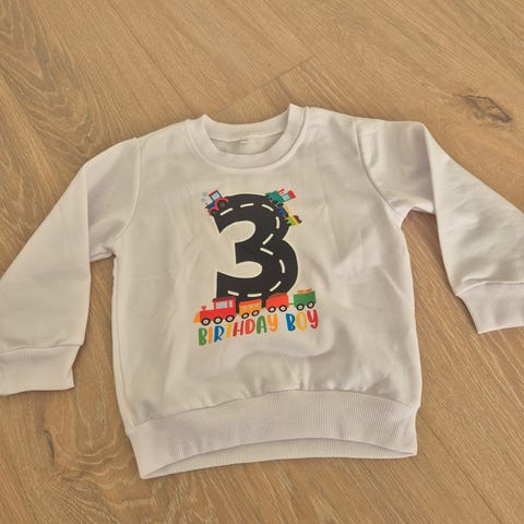 KappAhl genser for gutt i størrelse 98. Genseren er blå og laget av bomull. Den har rund hals med ribbestrikket kant og ribb nederst på ermer og i liv.