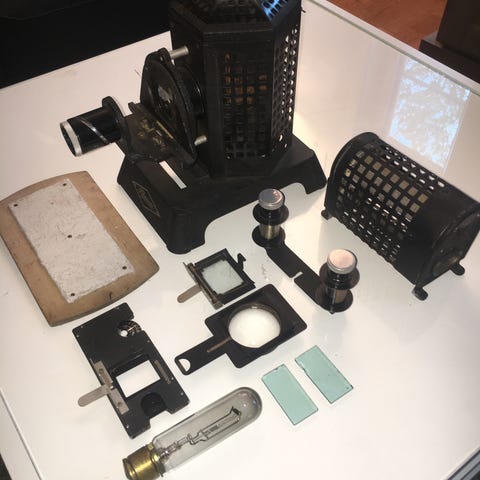 Selger en fungerende original JP50 bordprojektor fra J. L. Nerlien A/S, Oslo. Robust støpt metallkonstruksjon fra midten av 1900‑tallet. Utstyrt med et høykvalitets P. Angénieux‑objektiv — gir god skarphet og kontrast for 16 mm‑visning. Fungerer som den skal.