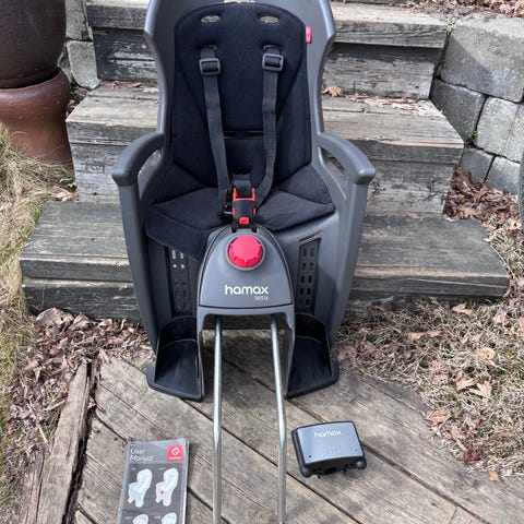 Barnesykkelsetet monteres på sykkelens ramme med medfølgende festebraketter. Det følger med to ulike Hamax-fester som gjør det mulig å bruke setet på flere sykler. Det ene feste passer også for sykler med vaiere langs den vertikale delen av rammen. Setet har fotstøtter med justerbare stropper for å holde barnets føtter på plass.
