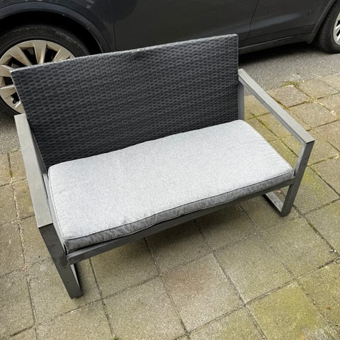 Sjekk her👈👉Hagebenk selges. Benken har buede armlener og lameller i sete og rygg. Passer til bruk på terrasse, balkong eller i hage som sitteplass for flere personer. Se pris👈Pris kan diskuteres ved hurtig avgjørelse 👈 Ps. Sjekk gjerne mine andre annonser også☺️☺️☺️