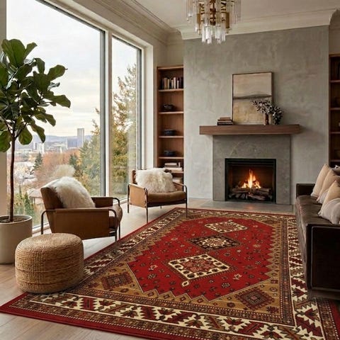 Fargene er nøytrale og gjør at teppet kan kombineres med ulike interiørstiler og møbler.