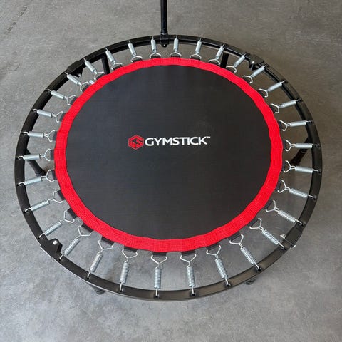 Abilica trampoline mini i svart farge. Rund trampoline med polstret kant og metallben med gummiknotter for stabilitet på gulvet. Så vidt prøvd og i utmerket stand.