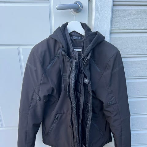 Lite brukt MC jakke i strørrelse large (L) selges da jeg har solgt min motorsykkel. Ingen merker eller skader. Seesoft ryggbeskytter og albuebeskytter følger som vanligvis koster 599 kr i tillegg.
