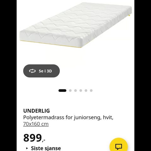 En fast skummadrass som passer til IKEA’s sprinkelsenger og oppfyller alle sikkerhetsstandarder. Det er godt ventilert og har et trekk som kan vaskes i maskin, noe som gir barnet ditt en trygg, koselig soveplass – og trygghet for deg.