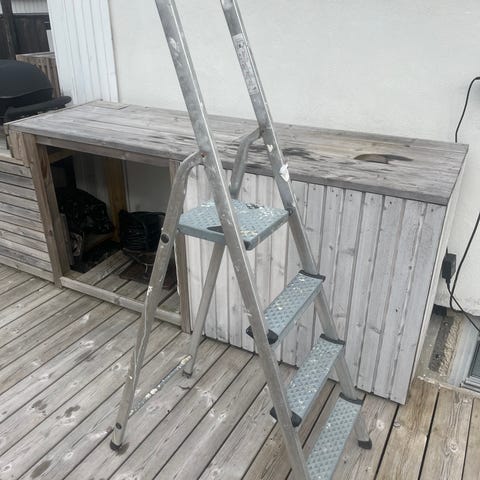 Gardintrapp. Øverste trinn 1m over bakken.