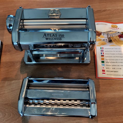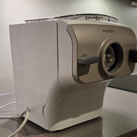 Ariete 1581 pastamaskin for tilberedning av hjemmelaget pasta. Maskinen leveres med 4 utskiftbare pastaskiver for ulike pastatyper og målebegre. Egnet til å lage blant annet spaghetti, tagliatelle og andre pastavarianter hjemme på kjøkkenet. Leveres i original eske med bruksanvisning. Kan sendes, hentes på Vigra, eller leveres på strekningen Vigra - Ellingsøya - Tennfjord.