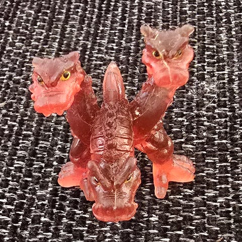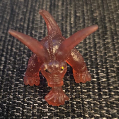 Basert på bildet er dette en sjelden Gamoja-figur fra 2006, produsert av Moose Toys. Figuren kjennetegnes av sitt gjennomsiktige materiale, ruglete overflate og store øyne.