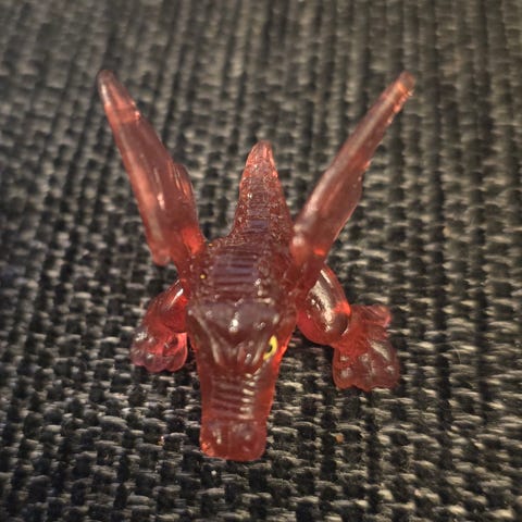 Gjennomsiktig variant: Den røde, gjennomsiktige plasten er en populær variant blant samlere sammenlignet med de vanlige, tette fargene.