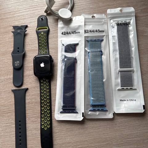 Apple watch series 10 cellular 42mm, brukt i 16 mnd. Følger med helt nye reimer, original lader og eske.