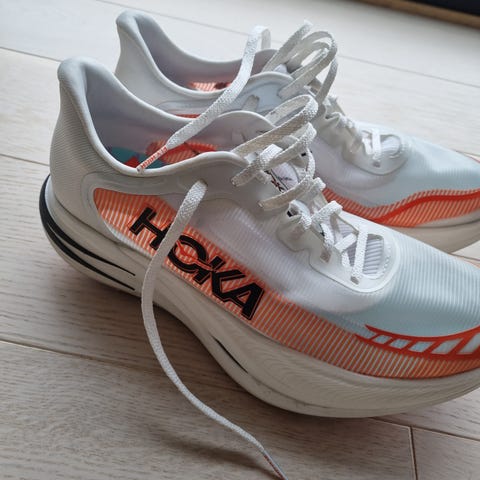 Ezinne karbon løpesko i størrelse 39. Prøvd 3 ganger på tredemølle men passer ikke helt min fot så selges derfor videre. Framstår nesten som ny. Mer informasjon om skoen: https://sportoutlet.no/sko/lopesko/product/119693?c=26444