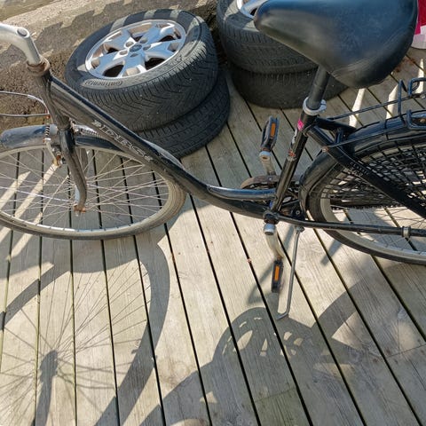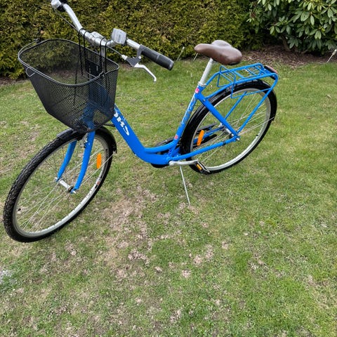 DBS damesykkel 53cm høyde. Sykkelen har lavt innsteg på rammen, kurv foran og bagasjebrett bak. Den er utstyrt med navgir med syv gir, skjermer foran og bak samt fastmontert rammelås med to nøkler. Passer til hverdagsbruk og transport i by og nærmiljø.