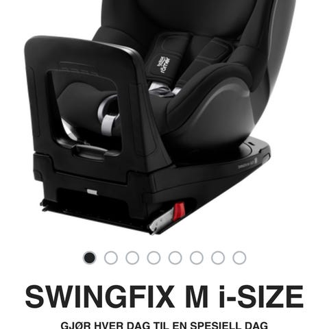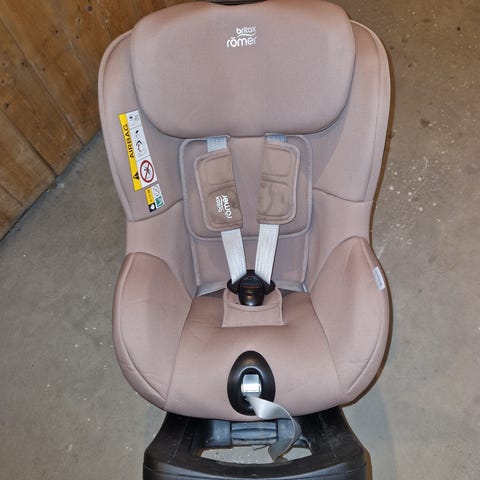 Bakovervendt Dualfix M Plus bilstol fra Britax Römer. 180° roterbar bilete for barn fra 3 måneder til 4 år (61–105 cm, opptil 20 kg). Pent og lite brukt av 1 barn. Trekk kan taes av og vaskes. Kjøpt ny i 2023.