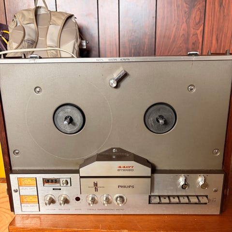 Selges en Akai 1730D-SS fra dødsbo. Dette er fire spors båndspilleren. Båndspilleren er tungt (17kg) og stått ubrukt en stund. Han er i fin stand rundt, motoren går både forover og bakover og låter musikk som det skal. Selvfølgelig kanskje må du smøre eller rengjøre det alt på nytt at fungere enda bedre enn nå.