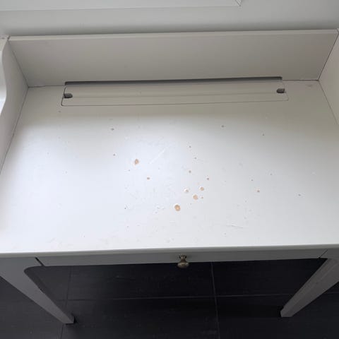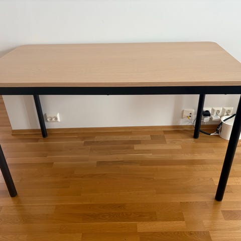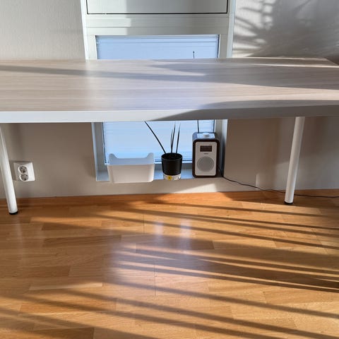 Skrivebord i bra arbeidsstørrelse. Regulerbar høyde.