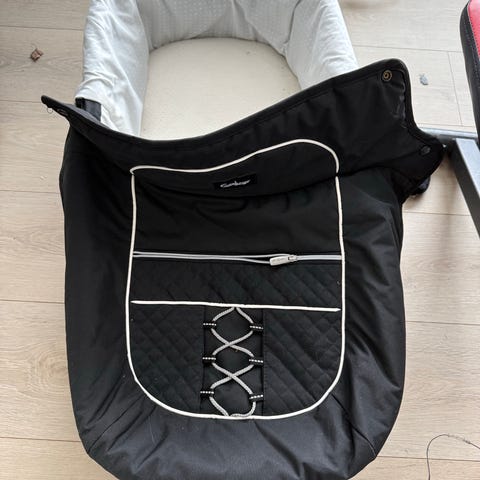 Emmaljunga sittedel i svart tekstil. Denne har justerbar kalesje med lys innside og lufting, samt fotbrett og frontbøyle. Setet er polstret og egnet for større babyer og småbarn. Passer til hverdagsbruk og trilleturer der det er behov for en robust sportsvogn.