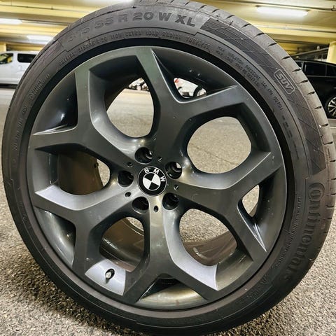 Felgene er pulverlakkerte grå av forrige eier og er tilnermet strøkne, jeg har satt på nye M-merker og nye jubileums-senterkopper.