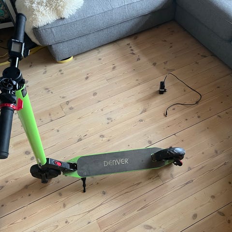 Sparkesykkelen gårbhelt fint. Men bremsene må fikses. Og det venstre håndtaket har falt av. Ellers ok.