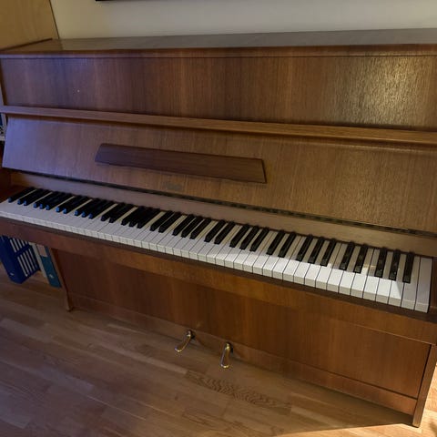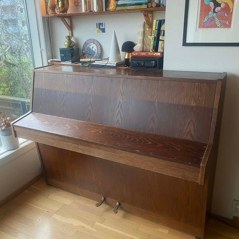 Er noen bruksmerker her og der, men er i tillegg til å være instrument, også et nydelig møbel.