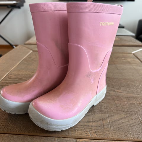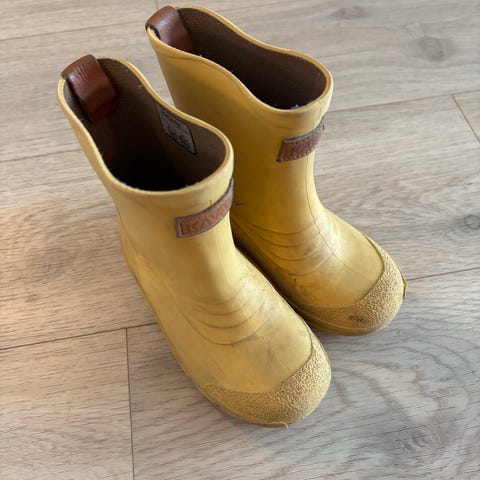 Kavat gummistøvler for jente i størrelse 28. Støvlene er i en lys, beige farge med grovmønstret såle for godt grep. Modellen har høy skaft og forsterket tåparti. Egnet til bruk i regnvær og våte omgivelser.