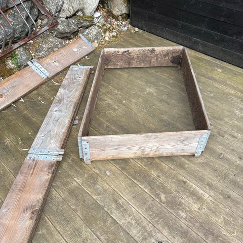 Pallekarm plantekasse i tre. 2pallekarmer og 1 palle.
