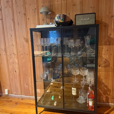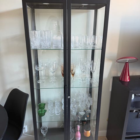 Pent brukt Milsbo vitrineskap fra IKEA selges pga plassmangel.