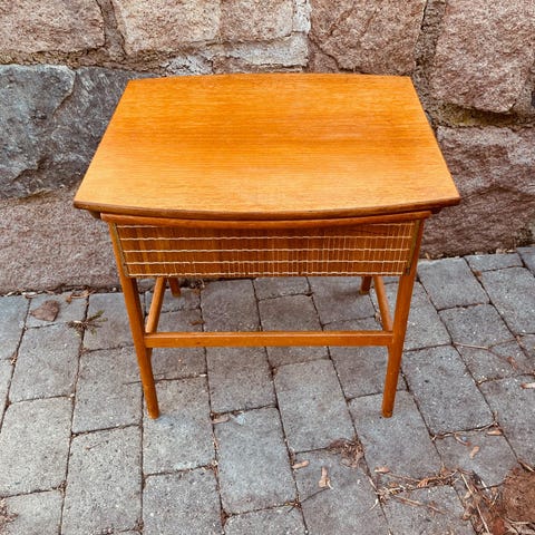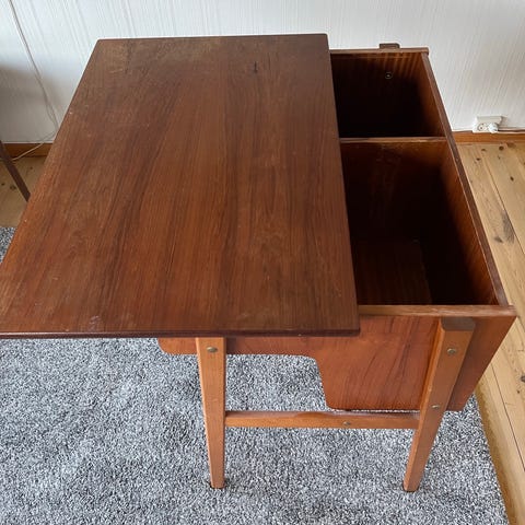 Teak sybord selges, det er i ok stand, men trenger litt fiks. Et bein er løst og forsøkt limt, uten at det ble helt perfekt. Selges derfor billig.
