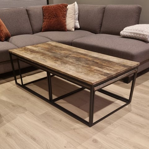 Dette er ekte bærekraftig luksus. Ved å kombinere historisk tømmer med en stram og moderne metallramme, skapes en spennende kontrast som tilfører varme til ethvert moderne hjem.