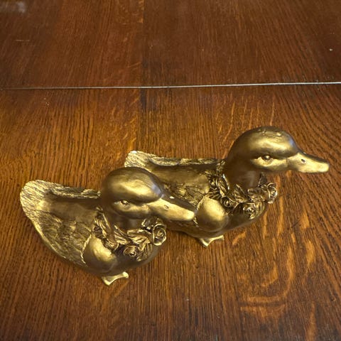 Dekorative fugler pyntegjenstander tung massiv messing /kobber. Alle fuglefigurer i tung messing /kobber med inngravert fjærstruktur. Figurenes størrelse egner seg til plassering enkeltvis eller samlet som gruppe. Egnet som pynt på gravplasser. Veldig tunge å tåler å stå ute i all slags vær. 1 er messing