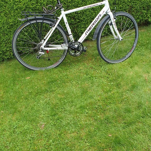 Selger en lett og rask hybridsykkel, Merida Speeder 200. Sykkelen er pent brukt, hovedsakelig når jeg har vært hjemme på sommerferier, og er godt vedlikeholdt. Den har noen normale bruksmerker/riper og mangler én eike på framhjulet, men fungerer som den skal. Sykkelen var på service på XXL i september 2025. Kranklager, bremseklosser, håndtak og ringeklokke ble også fornyet da. Begge dekkene er skiftet i løpet av de siste to årene. Sykkelen er utstyrt med kombipedaler.