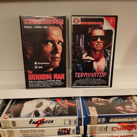 Terminator Arnold Schwarzenegger Filmsamling på VHS og DVD med norsk tekst
