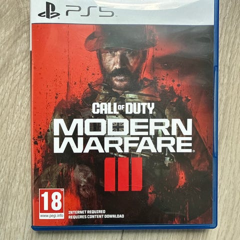Call of Duty Modern Warfare II spill for Playstation 5. Action/FPS-spill med aldersgrense 18 år. Spillet følger moderne militære operasjoner med både enspillerkampanje og flerspillermoduser, der spilleren deltar i taktiske oppdrag i ulike miljøer.