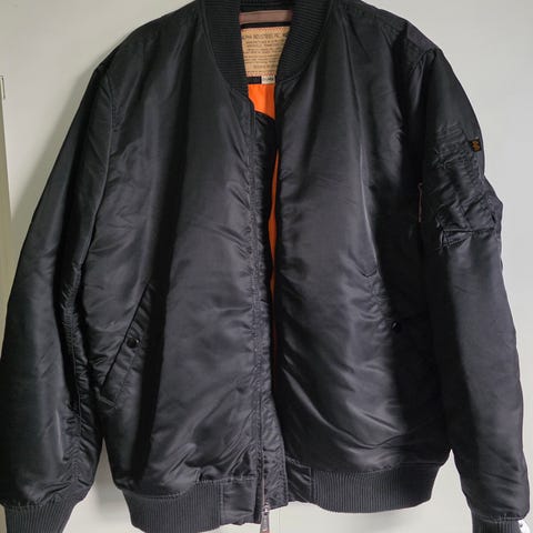 Selger en Alpha industries bomber jakke i str xxl som er brukt 1 gang, så fremstår som ny. Kan sendes mot porto.