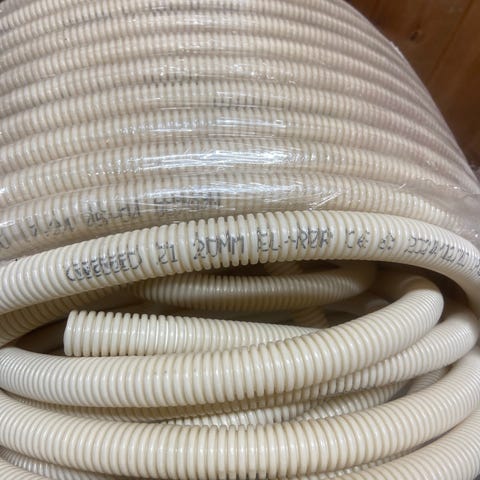 Kabelbeskyttelsesrør Ø50mm ca 20m. Kjøpt på Biltema for 479kr. Har kun brukt ca 4-5m og har minst 20 m igjen på kveilen. Selges for 250kr.