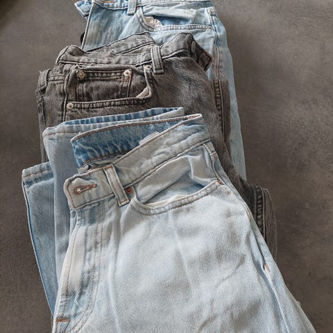 Pent brukte bukser fra Lee og Levis. Smal passform. Selges samlet for 500kr eller 150kr per par.