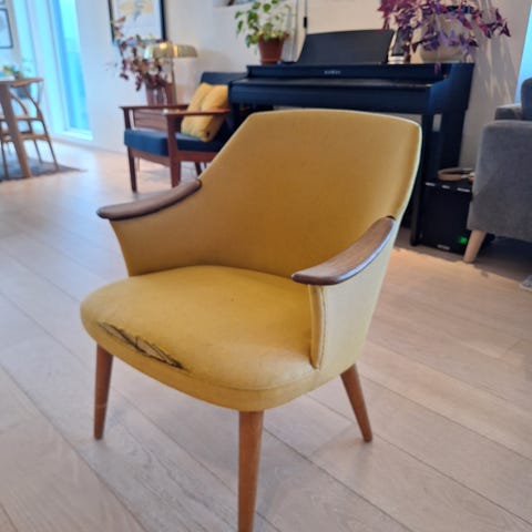Liten retro lenestol som passer perfekt i et hjørne eller som lenestol vedsiden av sofa.