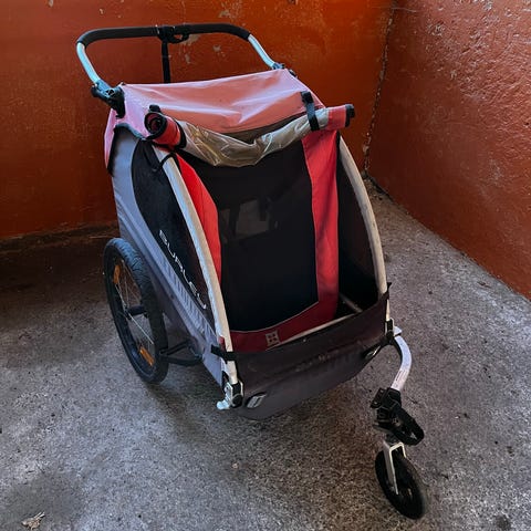 Godt brukt sykkelvogn. Denne har ikke regntrekk eller myggnetting MEN det er masse bruk igjen. Kan KUN brukes som sykkelvogn,da jeg ikke har forhjulet lenger. Normal slitasje