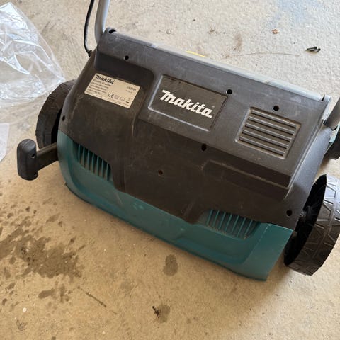 Makita UV3200 elektrisk plenlufter med 1300W motor og 32 cm arbeidsbredde. Maskinen drives på 230–240V, 50Hz, og har turtall uten belastning på 3000 o/min. Oppsamlerpose på 30 liter for mose og rusk. Egnet for lufting og skåren i plen i hage og uteområder. Leveres med vals med fjærer/kniver for bearbeiding av gressmatten.
