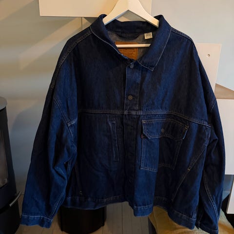 Levi's jakke for herre i størrelse XXL. Jakken er brun og laget i bomull. Den har knappelukking i front, brystlommer med klaff og sidelommer. Innsiden har mykt, pelsliknende fôr og kragen er i samme materiale. Fin vår/høst jakke 😊