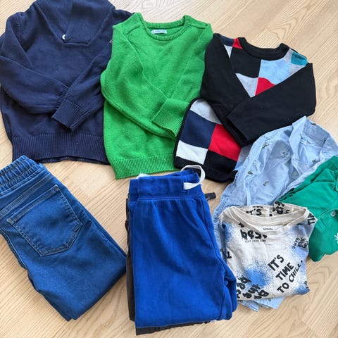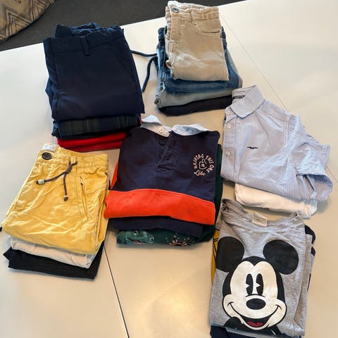 En pakke med ulike gutte klær. Passer en gutt fra 5-6 år. Merkene er Benetton, M&S, Gap, H&M etc.