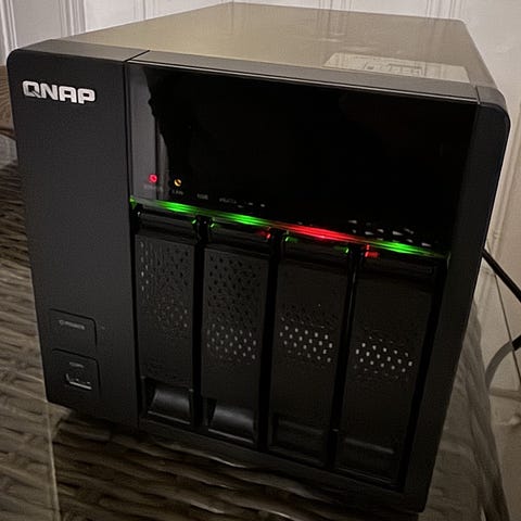 ▸ NAS-en er pent brukt, støvtørket og fungerer 100 % som den skal. Den selges uten harddisker, klar for at du kan sette inn dine egne. Alle originale diskvugger følger med.