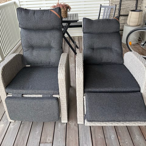 - 2 recliner hagestoler med regulerbar rygg