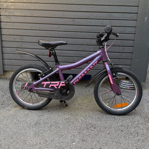 Tøff og holdbar sykkel for gutter og jenter. Utstyrt med solid stålramme, pedalbrems, skjermer og ringeklokke. Felgbrems i front. Komfortable og trygge holker. Støttehjul medfølger. Passer barn fra 4-6 år. Vekt: 9 kg.