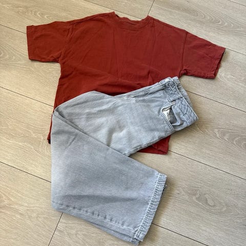 Joggedress fra Zara, hvit cargobukse fra Zara og svart yogabukse fra HM.